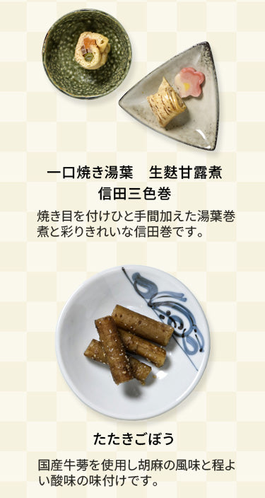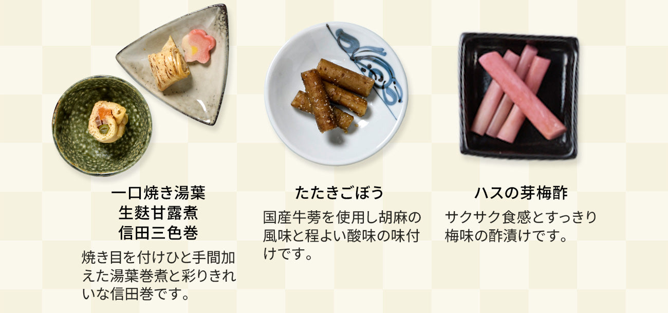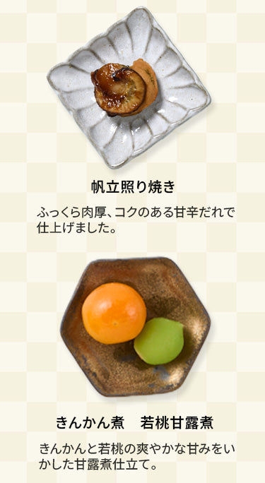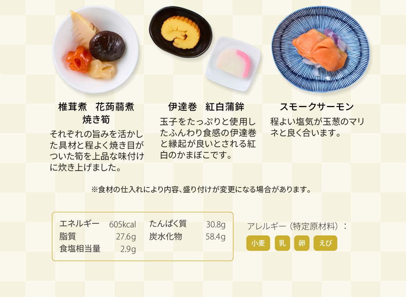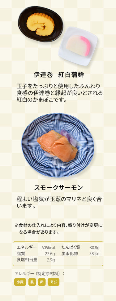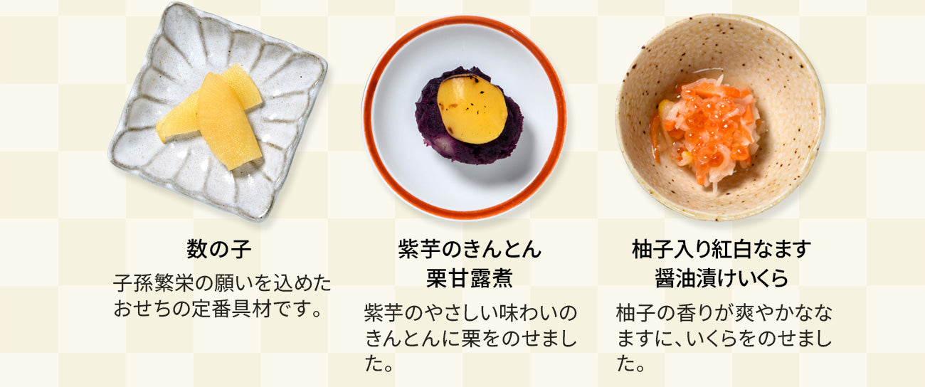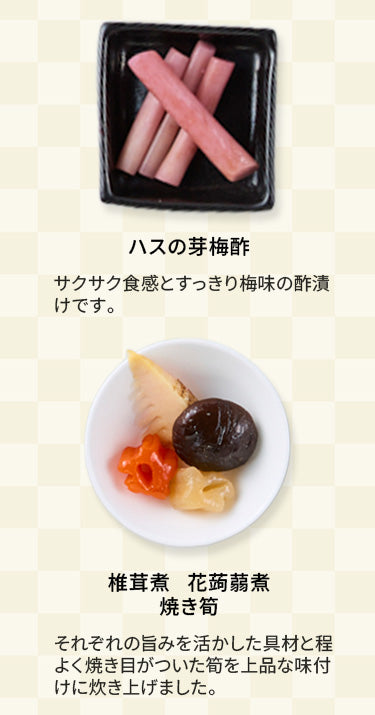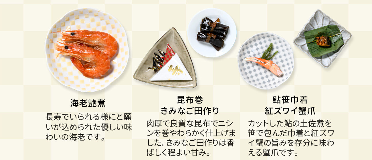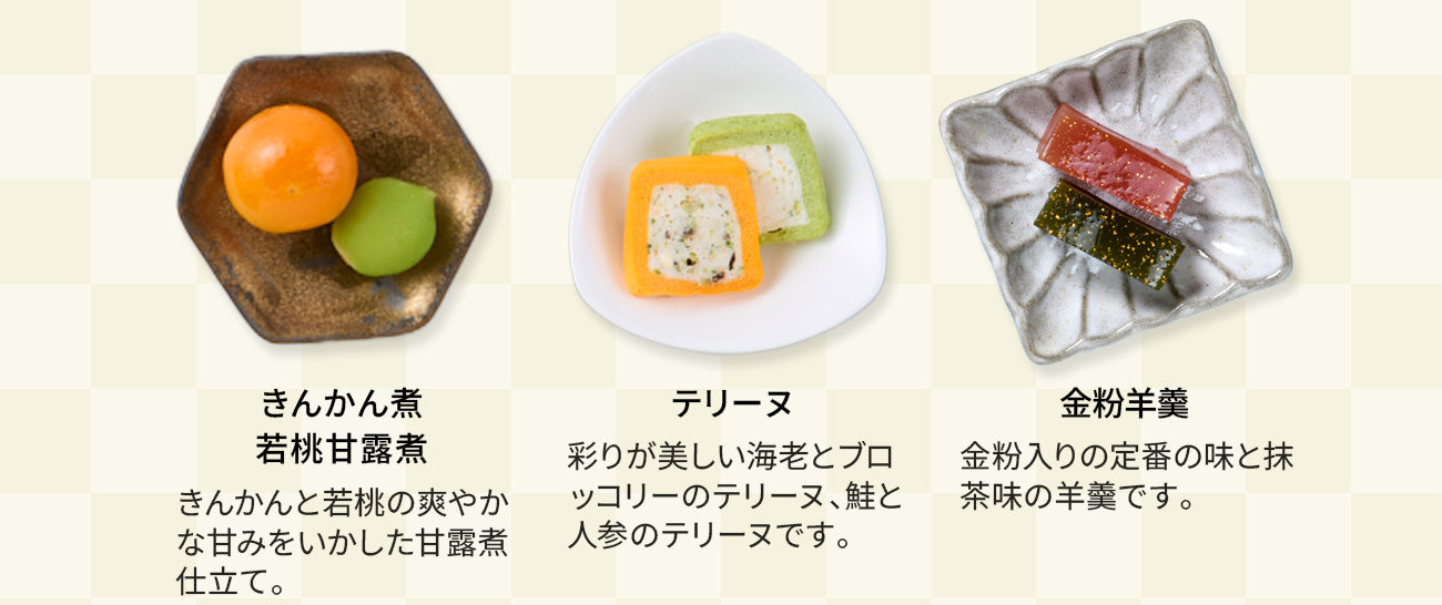 伝統的なおせちらしい品目をそろえつつ、食材の旨みを活かした塩分控えめ仕立て。